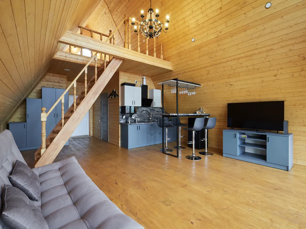 Так же в доме установлена барная стойка с подсветкой режима музыки, где можно будет себе позволить по чувствовать себя в комфортной барной обстановке, и при помощи профессиональных барных принадлежностей приготовить себе вкусный коктейль. Всё это для вас!