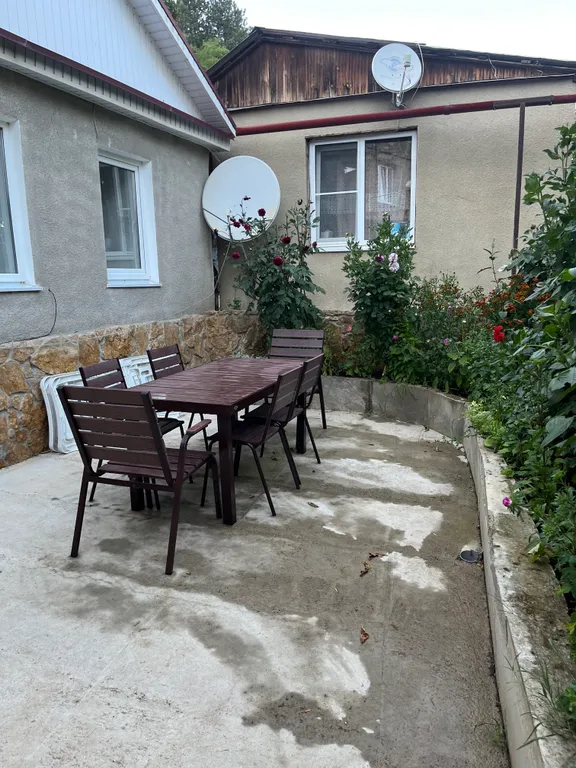 Возле дома и во дворе есть место для автомобиля. На территории и в доме есть wi-fi. Телевизор, сан-узел, две комнаты (раскладной диван для двоих, в обустроенная площадка во дворе, есть мангал (шампура+сетка -бесплатно)