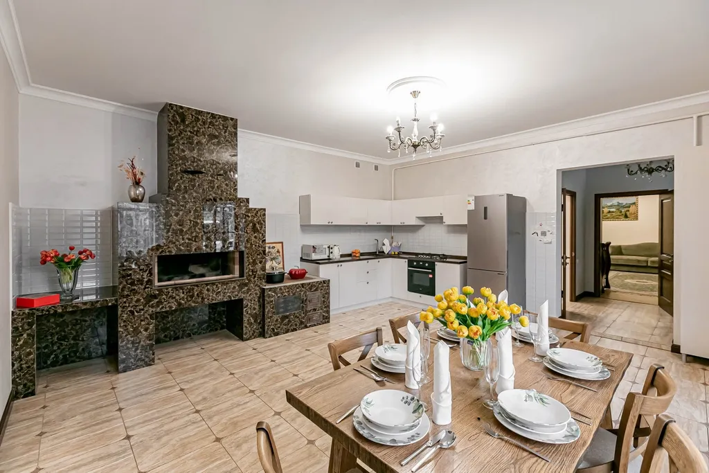 Представляем вашему вниманию великолепный дом в центре города, где продумана каждая деталь для вашего комфортного отдыха. Это место, где современная роскошь гармонично сочетается с традиционными элементами для комфортного отдыха.