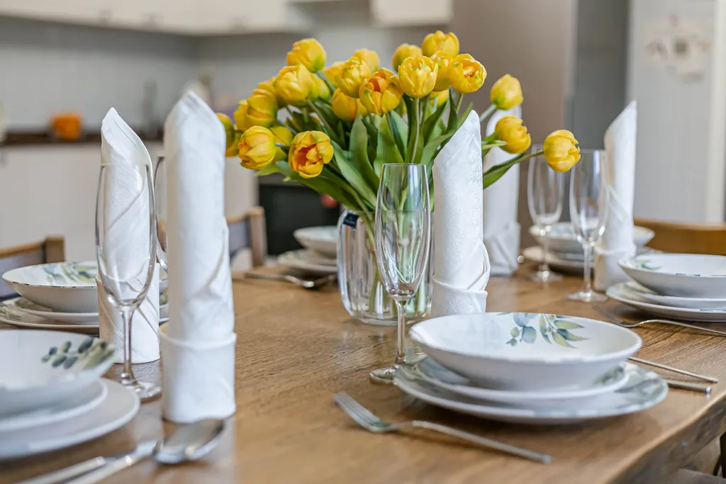 Просторная кухня (вся техника, посуда, столовые приборы)