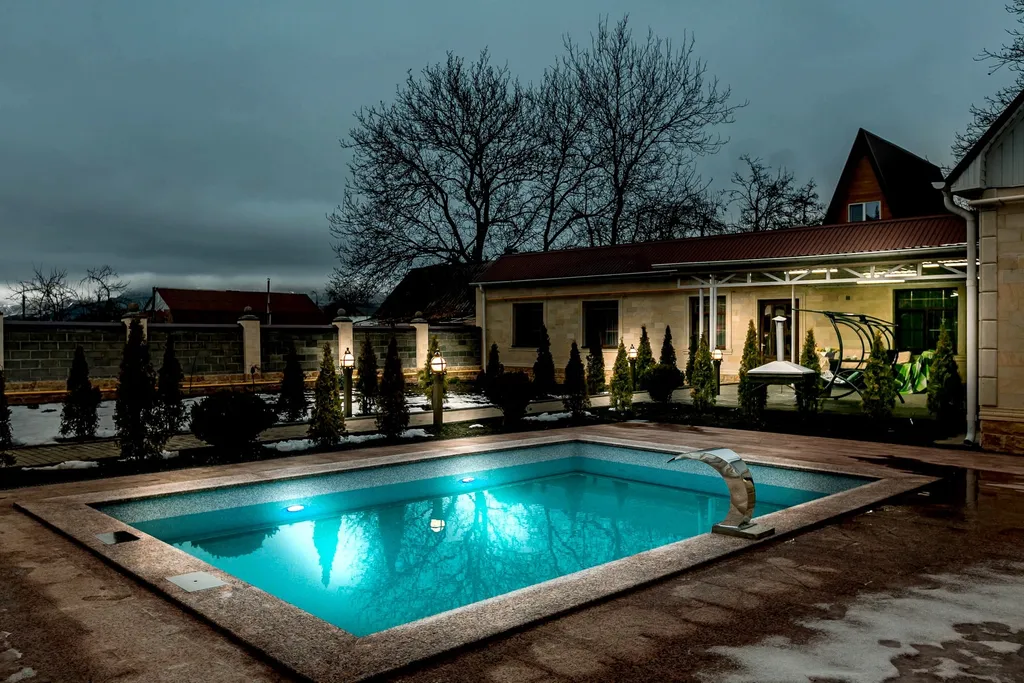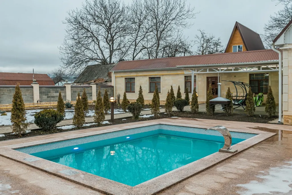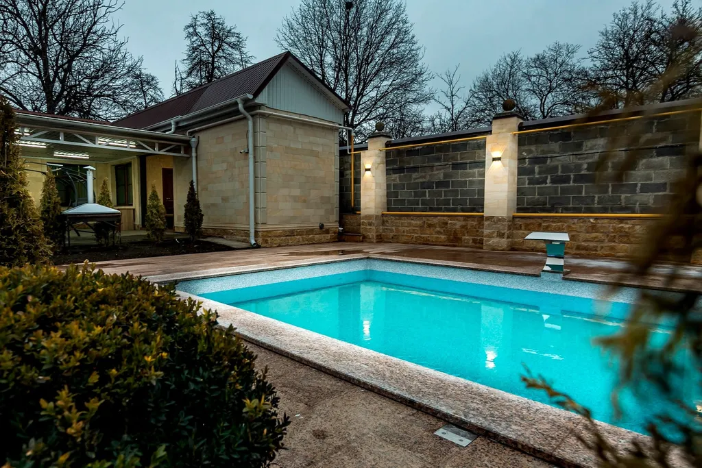 На территории располагается с подогревом бассейн с чистейшей водой, где можно освежиться как в жаркий день ,так и в холодное время окунуться в теплый бассейн. Рядом находится уютная летняя веранда, оборудованная современным комплексом для барбекю – идеальное место для семейных ужинов и встреч с друзьями на открытом воздухе.