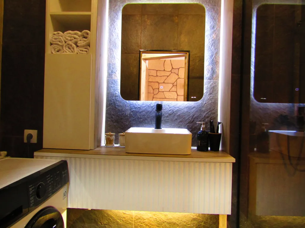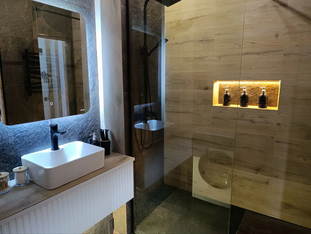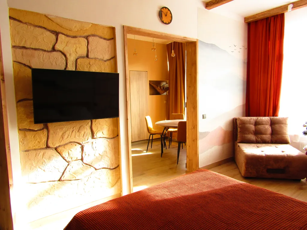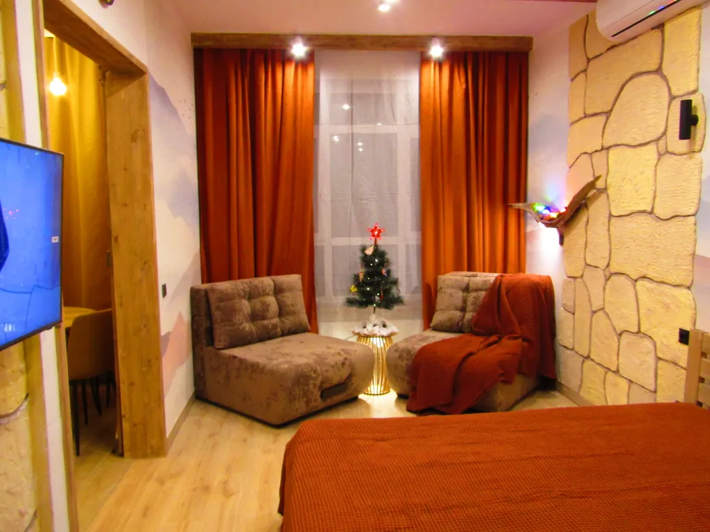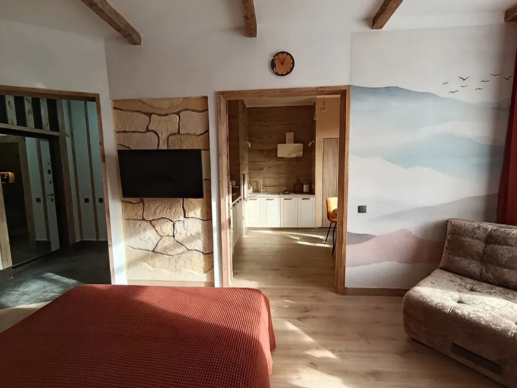 Уютная квартира в стиле альпийского шале, созданная для отдыха и перезагрузки. Тёплое дерево, мягкий свет и атмосфера горного уюта делают её идеальным местом для романтического уикенда или спокойного семейного отдыха.