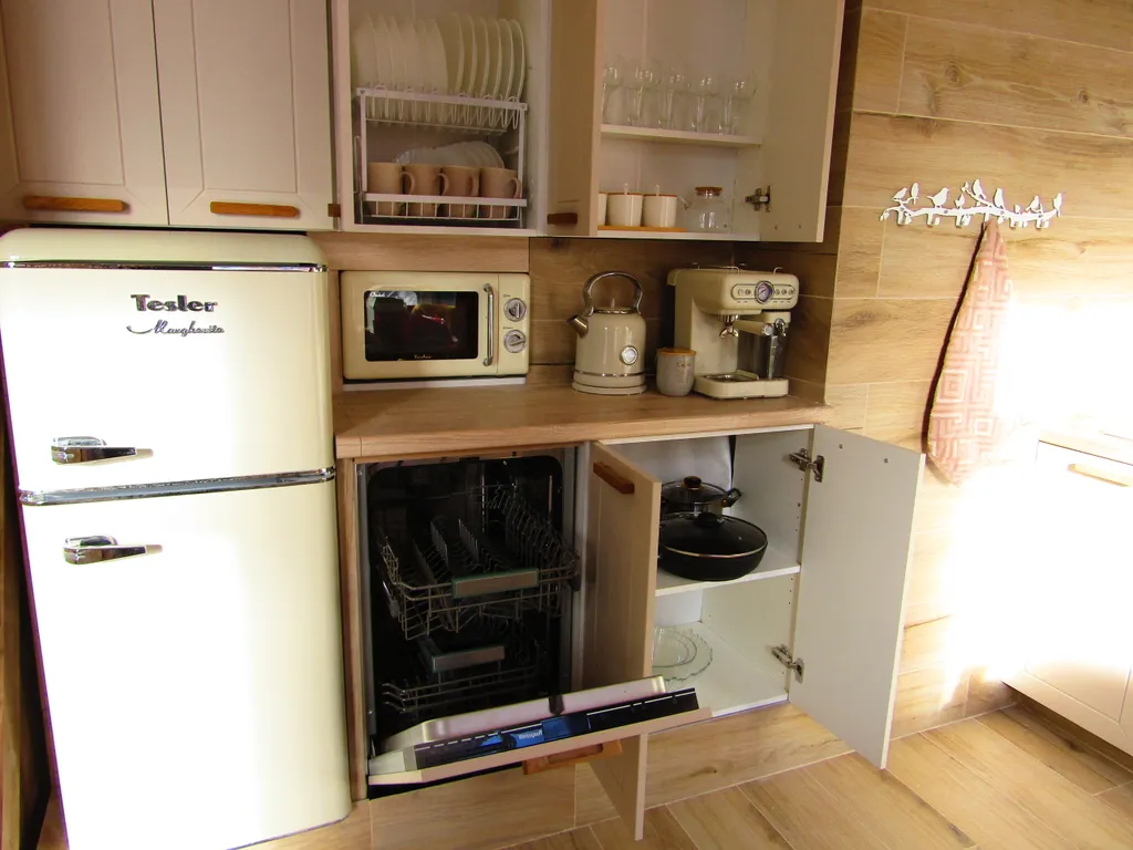 Оборудована всем необходимым для приготовления и приема пищи, а также теплым полом.