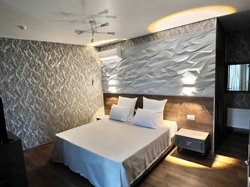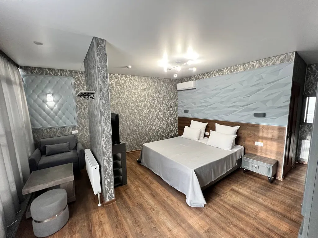 ортопедический матрас, мягкая мебель, ТВ, мини-холодильник, КД, сейф, телефон, Wi-Fi, чайник, чашки, чай и кофе, питьевая вода. Балкон с видом на город. Доп. место – раскладывающийся диван. Номера расположены в основном корпусе, в самом центре города-курорта Кисловодска.