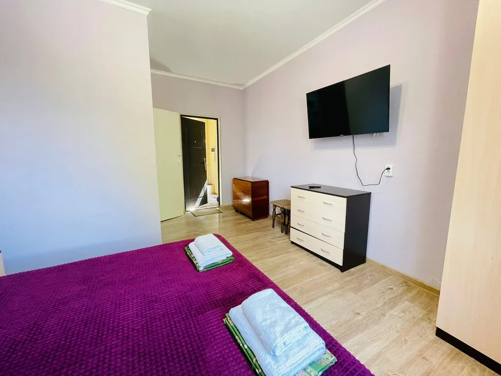 Wi-fi, smarttv 43 дюйма с голосовым помощником "алиса" есть подписка на "кинопоискhd", стиральная машинка автомат, моющие средства, постельное бельё и полотенца - белый хлопок, утюг, гладильная доска, фен, свч печь, варочная плита, холодильник, чайник, бесконтактное заселение.