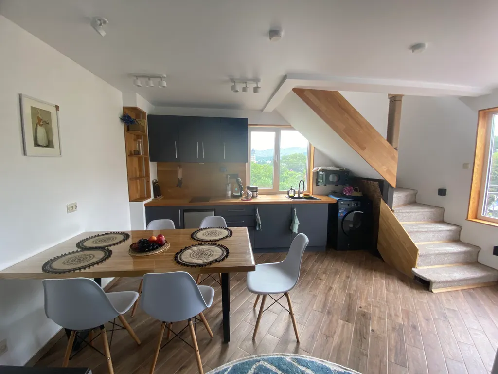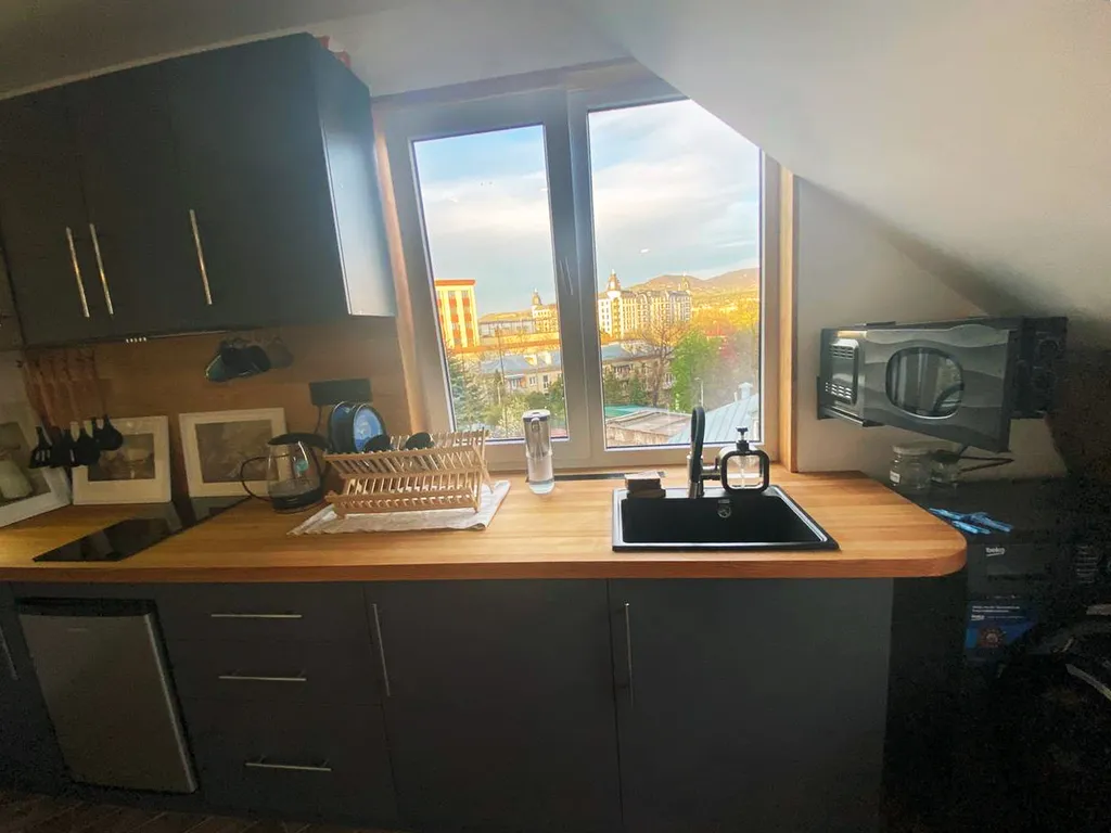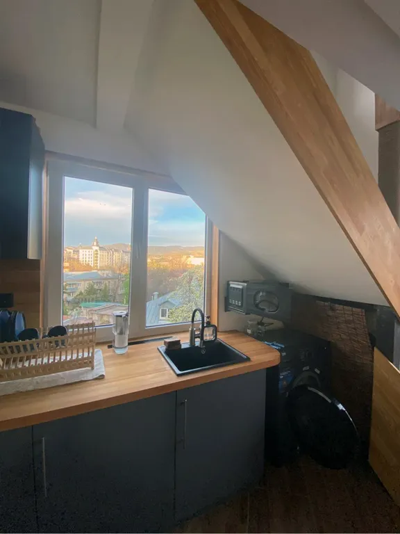 Отличное местоположение. До Курортного бульвара 7 минут, до центрального рынка пешком 3 минуты, из окон и террасы открывается потрясающий вид на город и горы, по утру вас встретит пение птиц и чистейший горный воздух.